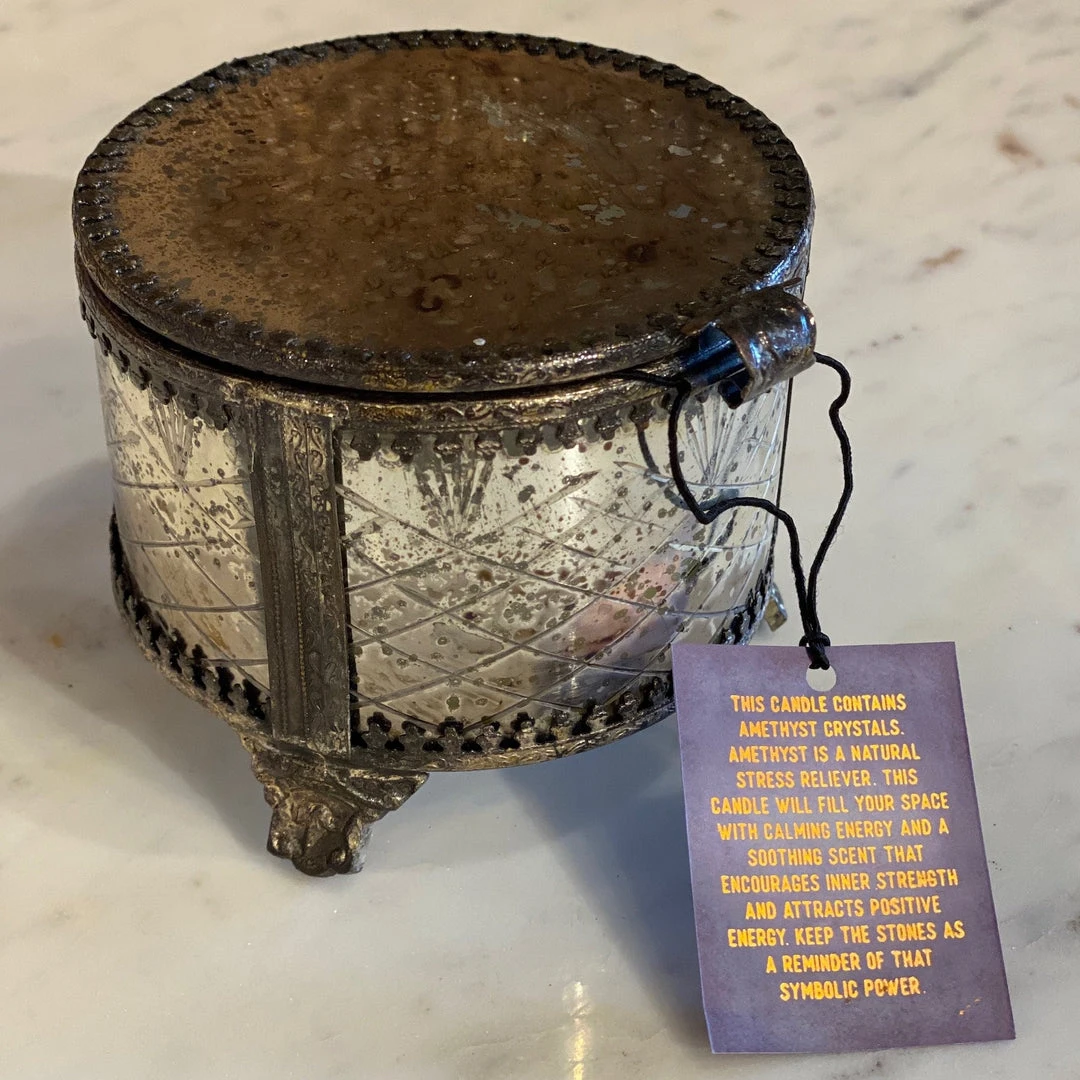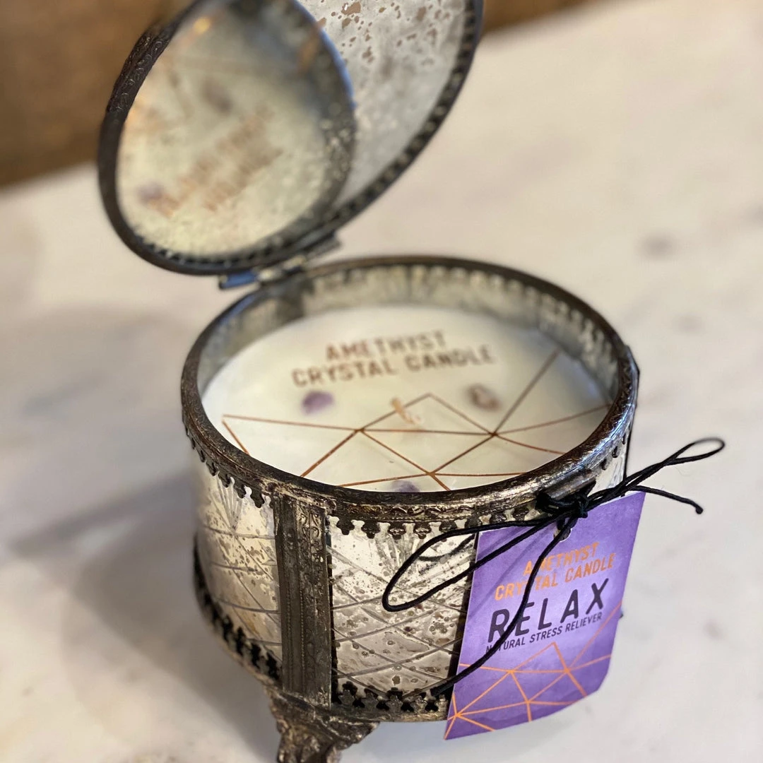 –ย This candle contains amethyst crystals. Amethyst is a natural stress reliever. This candle will fill your space with calming energy and a soothing scent that encourages inner strength and attracts positive energy. Keep the stones as a reminder of that symbolic power.