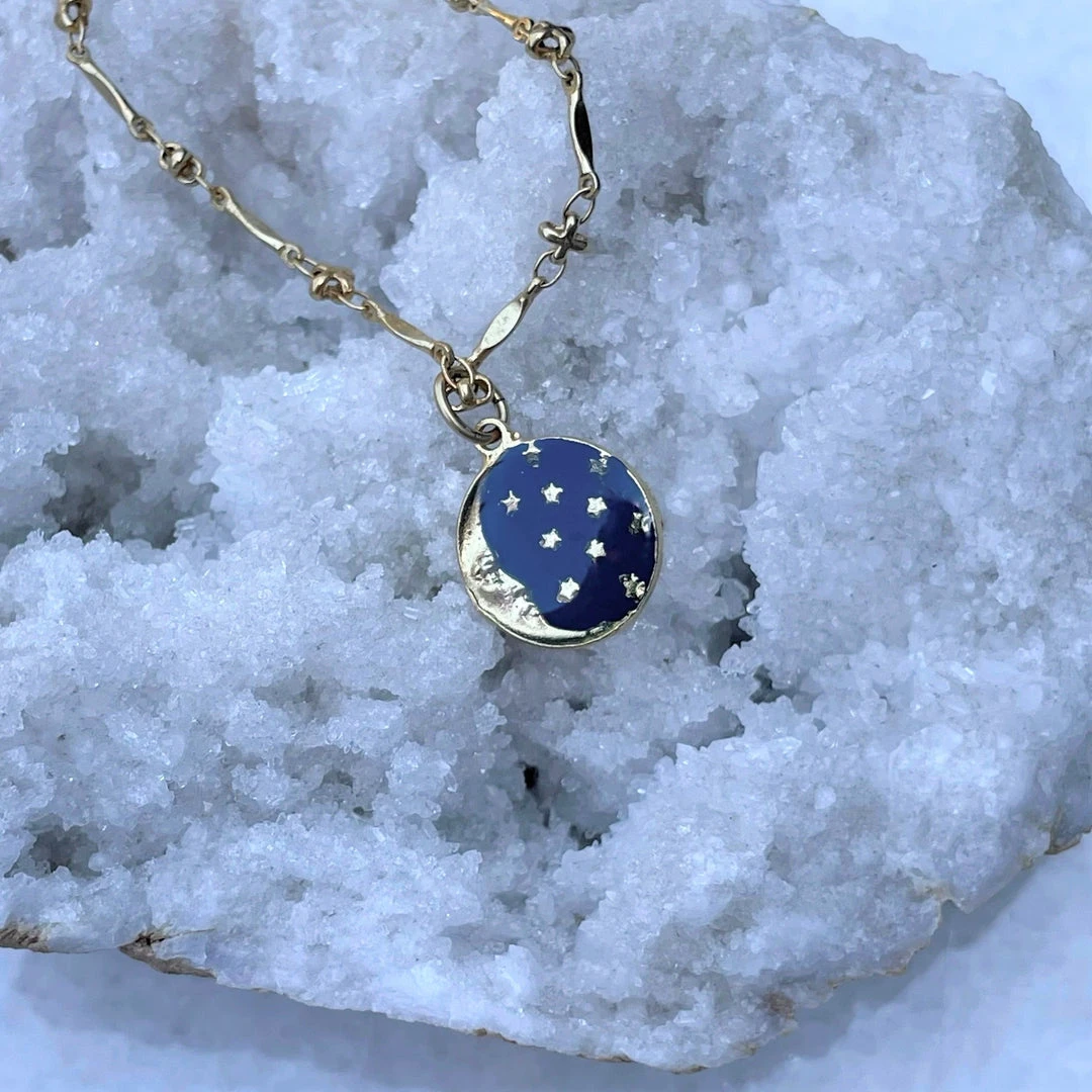Patina Stores Enamel Blue Moon Necklace Necklaces