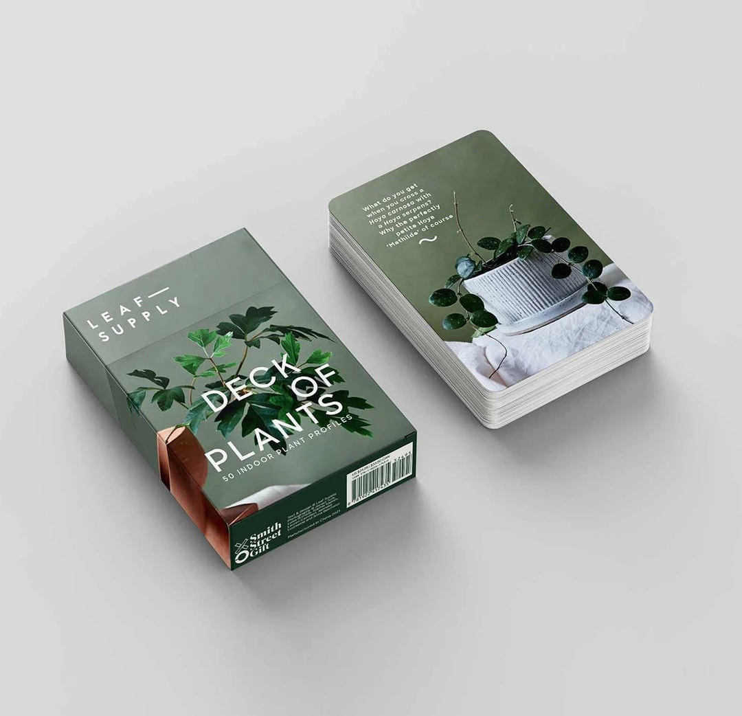 Staring at plants in the nursery but don’t know what to pick? Need some quick help reviving your favorite fern? Maybe you want to impress your other plant-loving (read: have no more flat surfaces) friends with your trivia? This deck of cards has everything you need to keep your plants thriving and become an expert on different varieties.