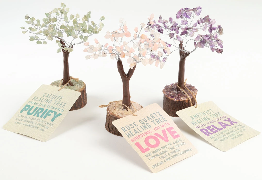 Healing crystals help amplify & balance the energy in the room. A tree branches out & sends the positive energy of the stones to all parts of the room, transforming the energy & mood of your space.