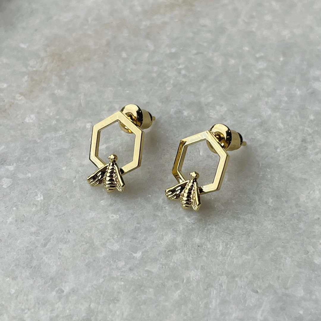 Be the first to review “Patina Stores Gold Hexagon Bee Earring” Cancel reply