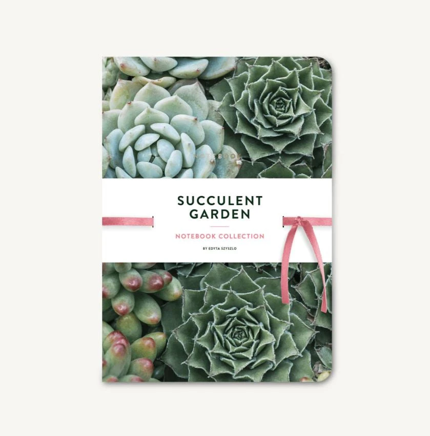 This trio of notebooks brings the evergreen charm of succulents to everyday notes and to-do lists. Each sleek journal features gorgeous photography of succulents on the cover, a stitched spine, a foil-stamped cover, and lined interior pages.