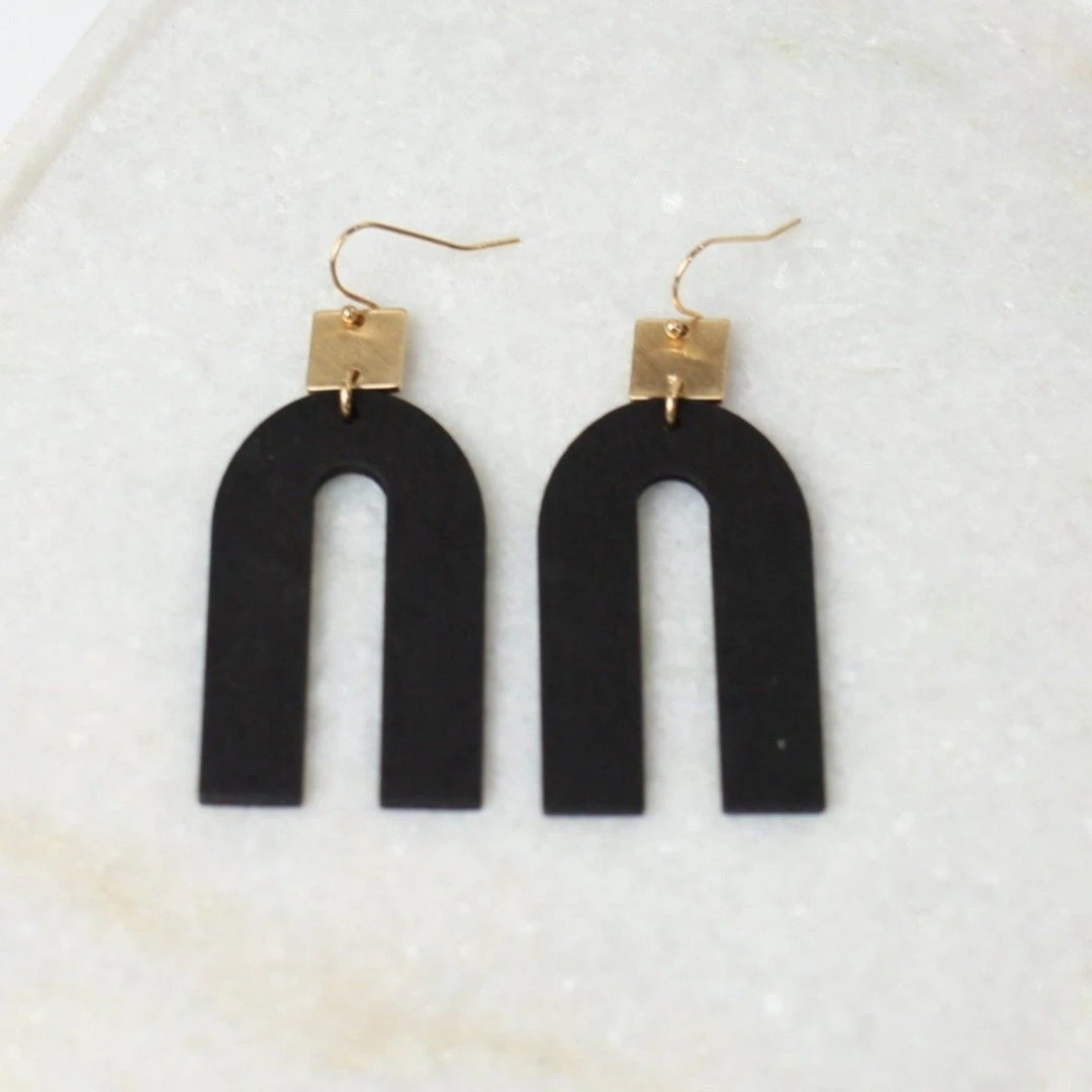 Lightweight black wood and metal arch earrings