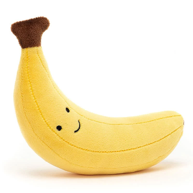 Fabulous Fruit Banana is so laid-back, lounging in stretchy golden fur! With a dapper brown stalk, stitchy peel, and a splendid sunny smile, this bright banana might just hang out for a while