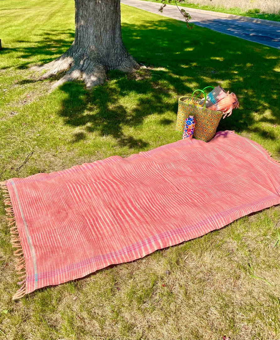 This 100% cotton, handloomed textile is perfect for all your spring and summer time activities. It can be used as a towel, blanket, lightweight shawl, picnic blanket, etc. It is quick drying and lightweight, making it easy to travel with!