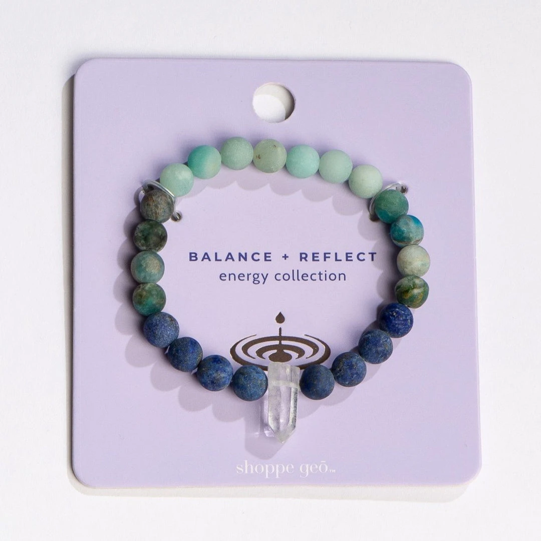 Wear a wash of color with intention! This unique bracelet highlights both the vibrant beauty and beneficial energetic properties of carefully selected genuine crystal beads. Set an intention to Balance + Reflect each time you wear it.