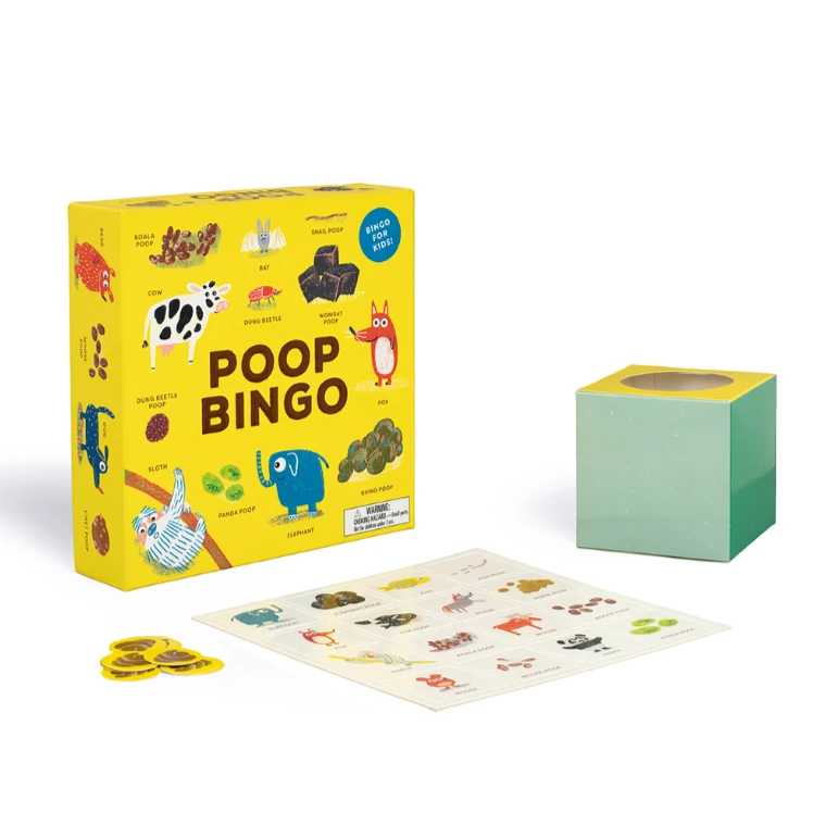 Few topics provoke uncontrollable kid giggles more than animals and bowel movements. Add a dash of competition and you get a hilarious game for the creature and caca curious. Doo-ing away with letters and numbers, this illustrated poop-themed bingo board tests your child’s ability to match the beast with its, well, business. Up to eight can partake in this challenge while learning strange but true feces factoids. For instance: Wombats poo in cubes, while penguin plops come out as colored squirts. In every round of play, little ones aim to be number one by using their newfound knowledge of number two.