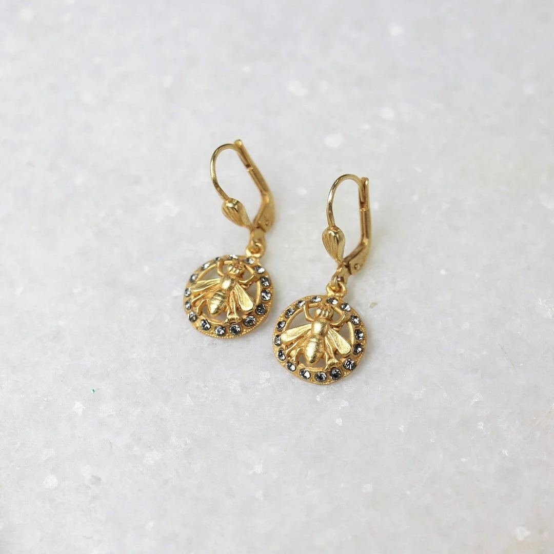 Gold rhinestone bee earrings