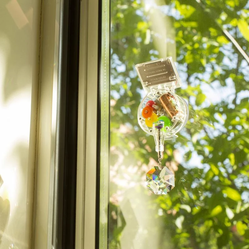 The genuine crystal rotates and refracts sunlight to create a swirl of rainbows in your room.