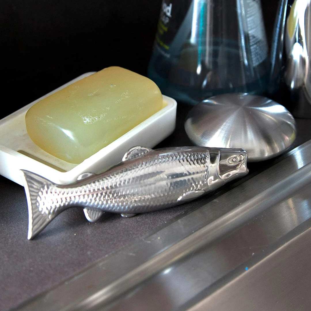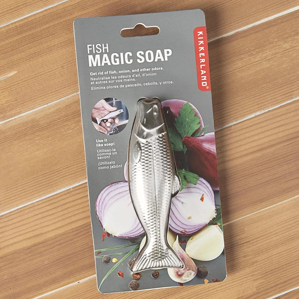 Rid your hands of smelly odors with this Stainless Steel Fish Soap. 100% stainless steel binds to the sulfur compounds found in garlic, fish and onions, transferring the scents from your hands to the “soap”.