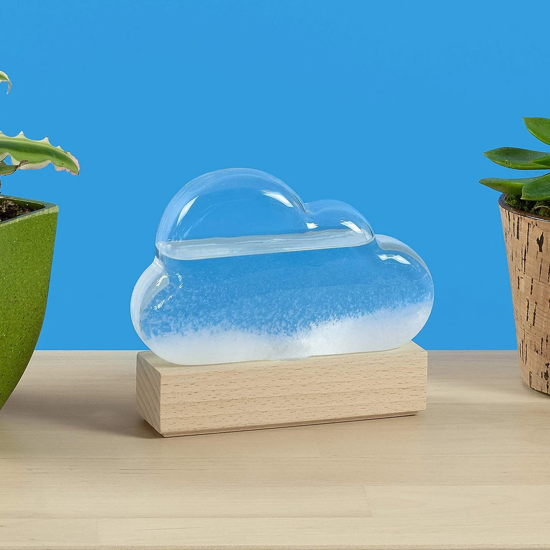 Nobody knows who invented the “storm glass”—ancestor of this charming cloud—but it was popularized by pioneering meteorologist Robert Fitzroy, captain of HMS Beagle. (He coined the word “forecast.”) This playful interpretation works the same way they did back then. Special liquid inside the glass crystallizes in different patterns as the barometric pressure changes. Fitzroy used his while carrying Charles Darwin on his famous, five-year voyage. Sitting on your desk or windowsill, yours can accompany you on side trips to Planet Weather Nerd.